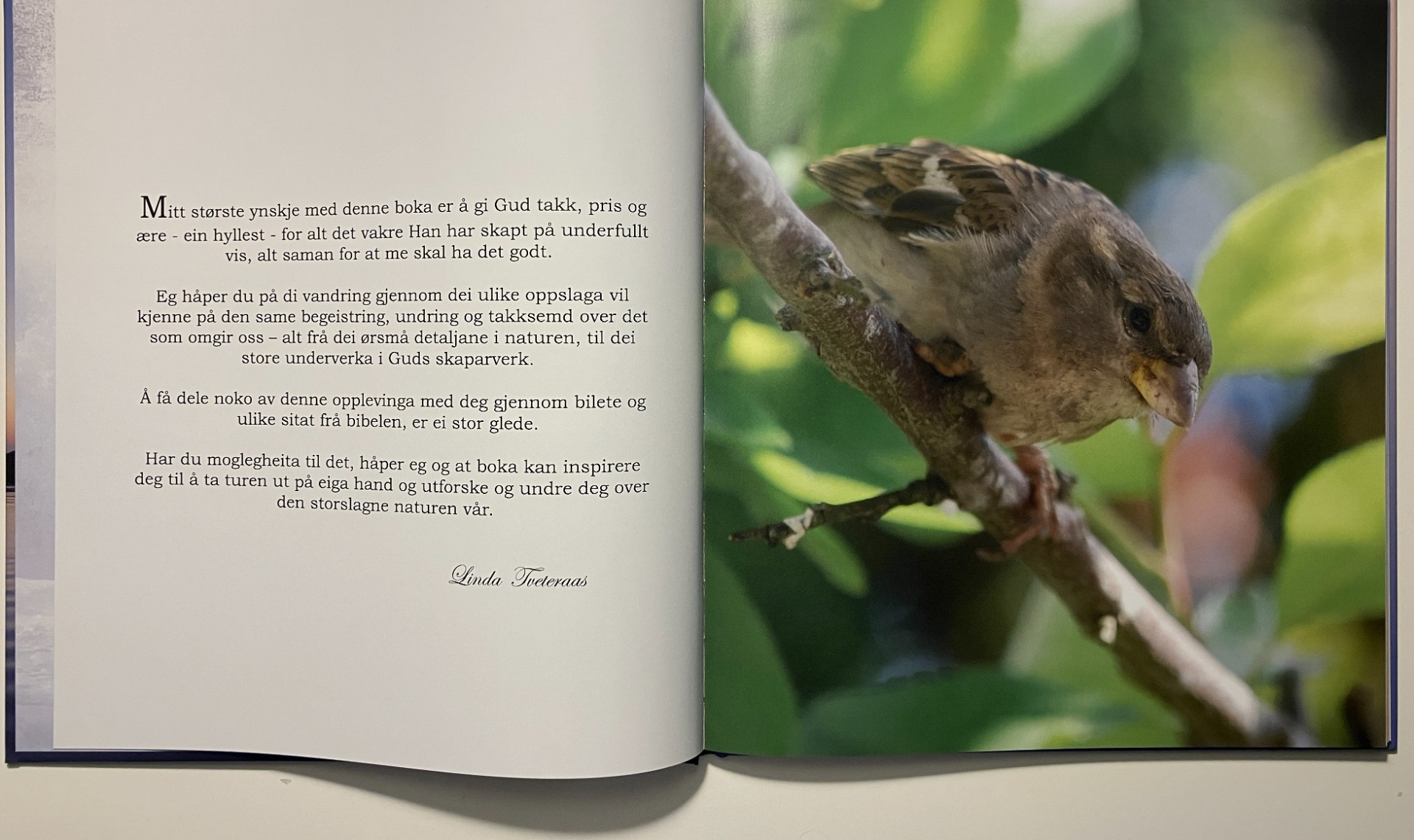 Det var med dette bakteppe eg hadde lyst å lage ei bok som formidla dette i bibeltekstar og bilder. Hausten 2025 blei boka ferdig, om kom ut i november.